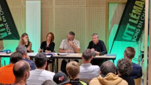 L’assemblée avec l’élu de la mairie et Jérémy BANON de Vélomania