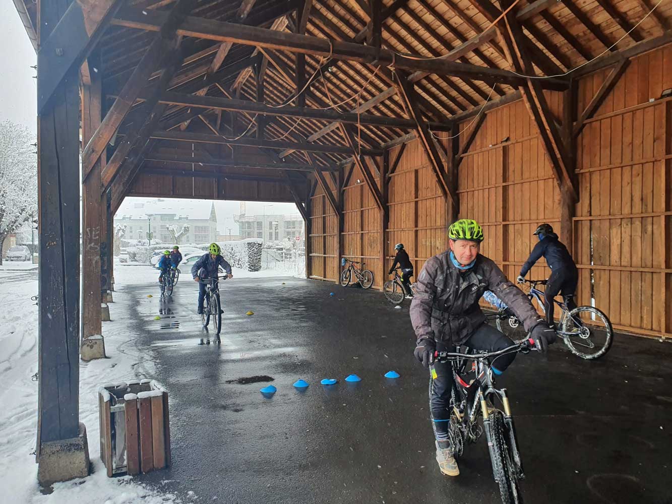 Ce samedi, six entraîneurs se sont « formés » afin de pouvoir encadrer le SRAV à l’école, sous l’œil d’un expert attentif (Alex Balaud) et avec l’aide de six jeunes de l’école de vélo qui étaient présents pour permettre une mise en situation dans des conditions au plus proche de la réalité.