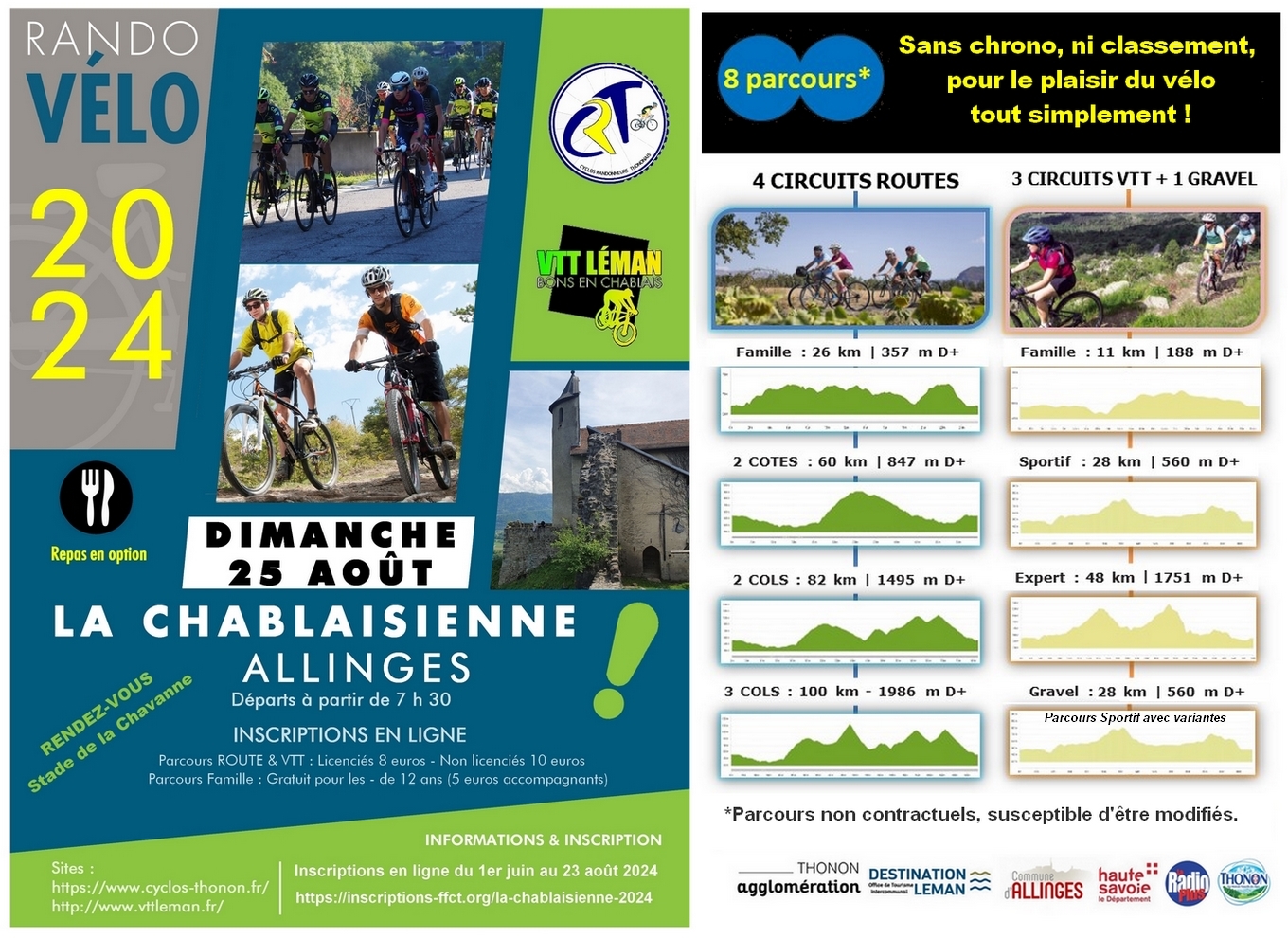 La 17ème édition de La Chablaisienne est organisée par les clubs des Cyclos Randonneurs Thononais (C.R.T.) et VTT Léman de Bons-en-Chablais, avec le soutien de Thonon Agglomération et la commune d’Allinges, ainsi que l’Office de Tourisme Intercommunal « Destination Léman ».